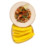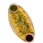 Golden samosas crumbled over a bed of chickpeas, yogurt, and zesty chutneys for a harmonious fusion of textures.