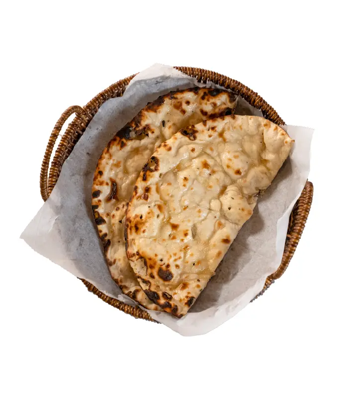 Naan brushed with butter for a rich finish.